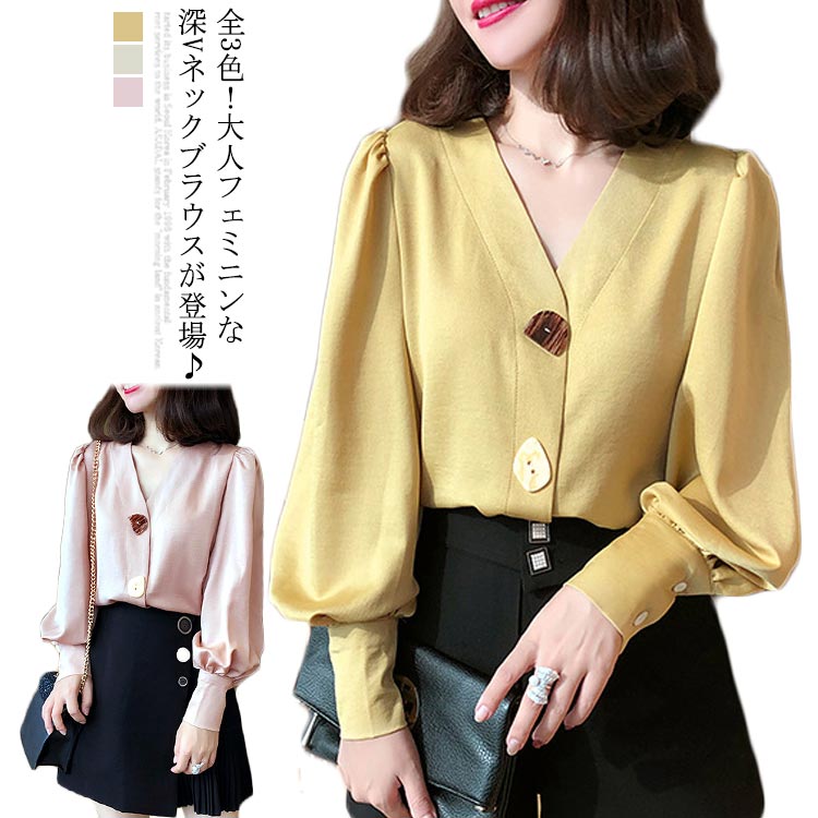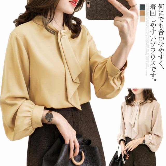 ブラウス ボリューム袖 レディース シャツ シフォンシャツ 長袖 トップス 無地 とろみ ゆったり 春秋 キレイめ 無地 大きいサイズ オフィス 通勤 20代 30代