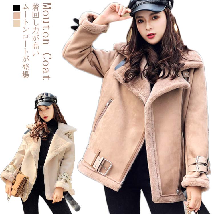 ショート丈 ムートンコート フェイクムートン コート ライダースジャケット ボア コート レディース フェイク ファー コート アウター 防寒 秋冬 冬コート
