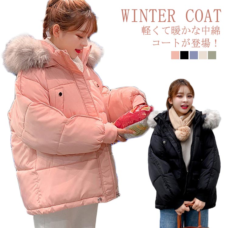 中綿コート フード付き ロングコート ブルゾン レディース アウター ロング丈 ポケット付き 体型カバー ファー付き 着痩せ 無地 秋冬物 お洒落 防寒