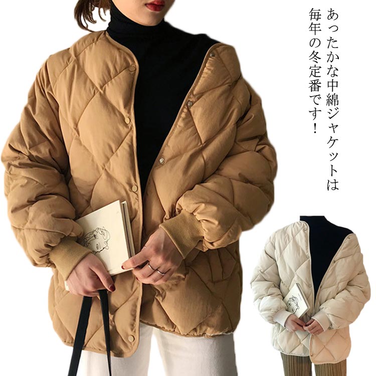 中綿ジャケット レディース ショート丈 キルティング ジャケット 着痩せ アウター ゆったり 冬物 体型カバー お洒落 厚手 羽織り 防寒 あったか