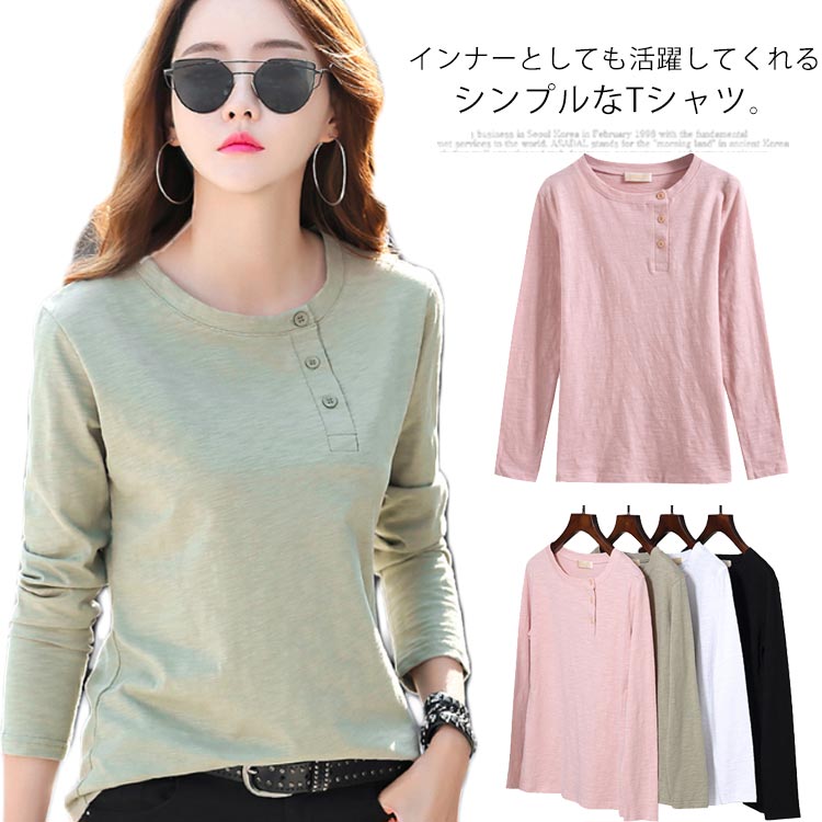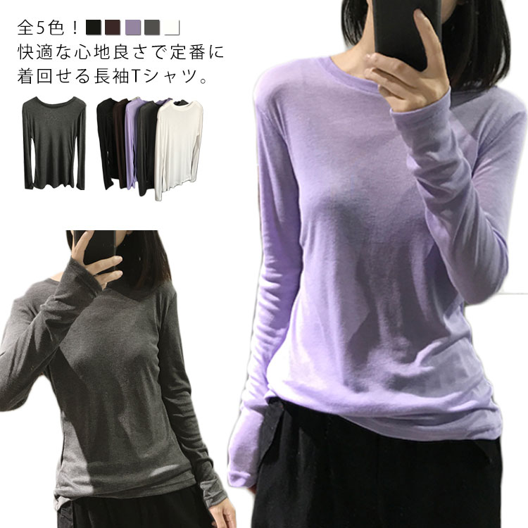 Tシャツ トップス カットソー ラウンドネック 長袖 無地 レディース ストレッチ 春秋冬 インナー 着痩せ シンプル キレイめ お洒落