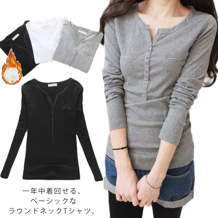 Tシャツ レディース カットソー 長袖 ラウンドネック トップス 着痩せ カジュアル 無地 裏起毛 コットン 大きいサイズ 秋冬物 お洒落