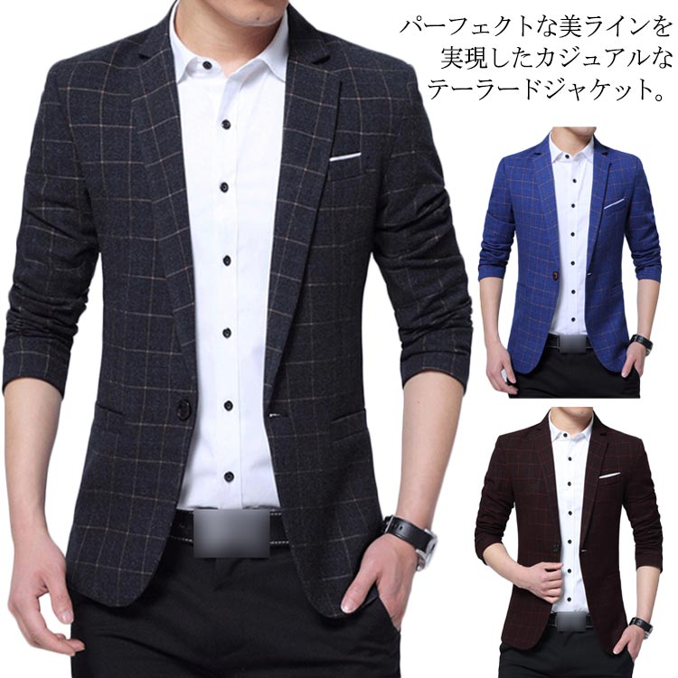 テーラードジャケット メンズ スーツジャケット ジャケット 裏起毛 スーツ チェック柄 ビジネス 紳士服 通勤 アウター 細身 春秋冬 大きいサイズ お洒落