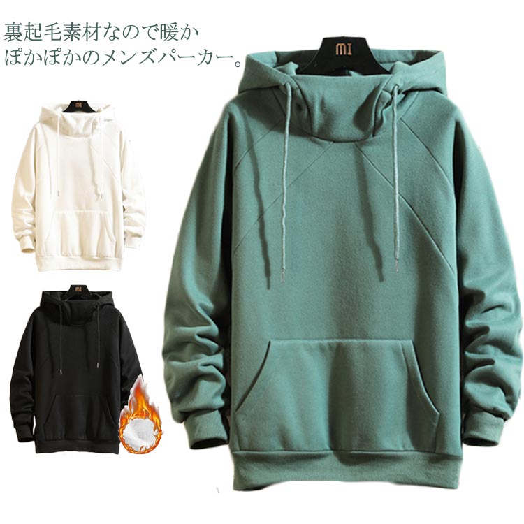 パーカー メンズ スウェット フード付き ゆったり 長袖 ハイネック トップス ゆったり 厚手 お洒落 無地 体型カバー 大きいサイズ カジュアル