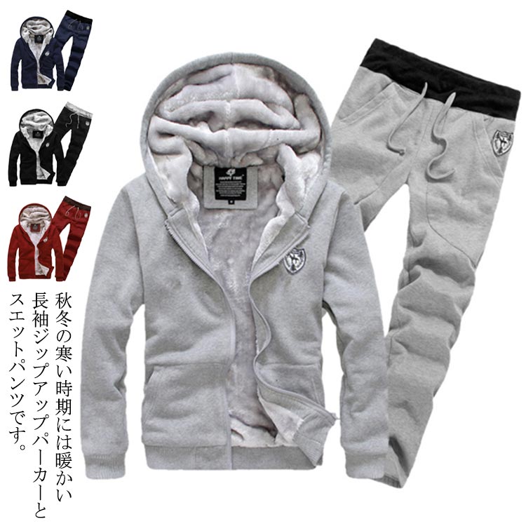 セットアップ メンズ フード付き ジャージ 裏ボア 上下セット 裏起毛 パーカー ジップアップ 厚手 スウェット スポーツウェア 防寒 秋冬 お洒落