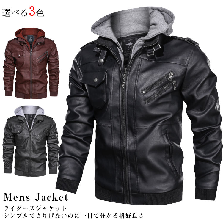 重ね着風 PUレザー ジャケット メンズ 革ジャケット 皮ジャケット レザー ライダースジャケット フェイク レザー ジャケット ミリタリージャケット ライトアウター ブルゾン