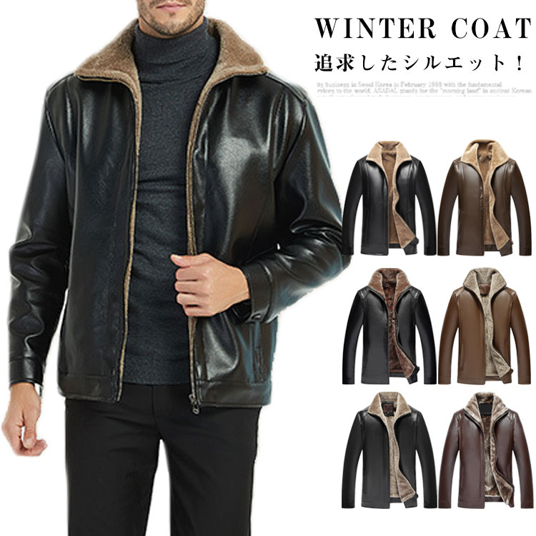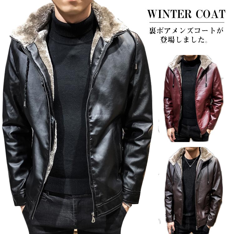 裏ボア コート PU レザー ジャケット ライダースジャケット コート メンズ 裏ボア ジャケット フェイク レザージャケット ボア ジャケット コート 防寒着 革ジャン アメカジ系 アウター