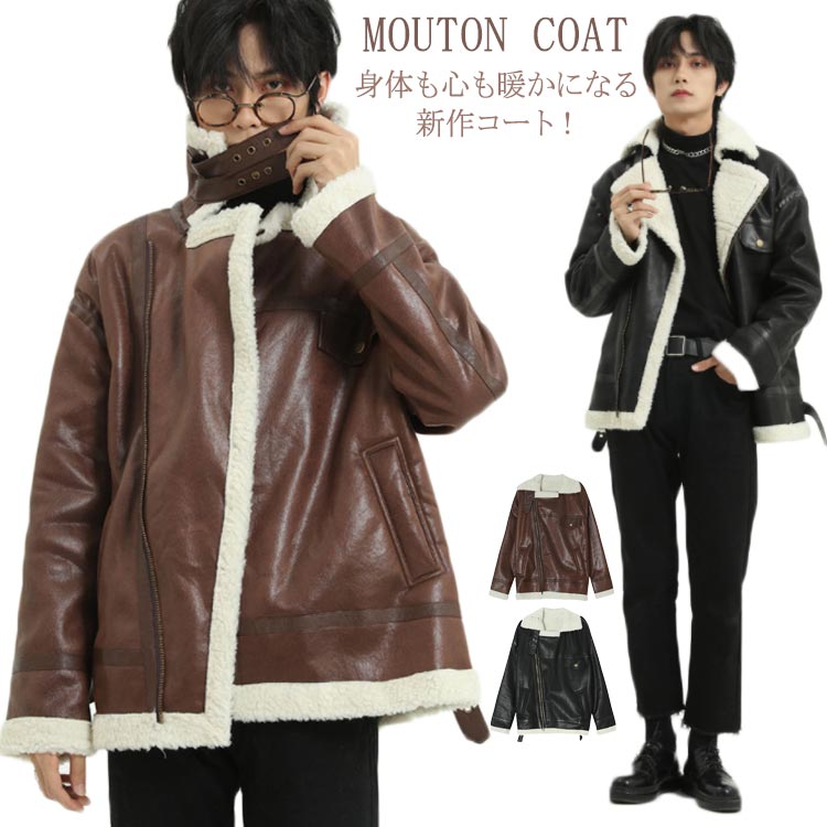 フェイク ムートンコート ジャケット ブルゾン 裏ボア コート ムートンコート メンズ ムートン コート ボア ボアブルゾン ボアジャケット ボアコート 防寒 ストリート アメカジ 秋 冬