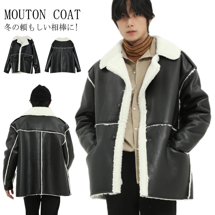 裏ボア コート ムートンコート メンズ ムートン コート ボア フェイク ムートンコート ジャケット ブルゾン ボアブルゾン ボアジャケット ボアコート 防寒 ストリート アメカジ 秋 冬
