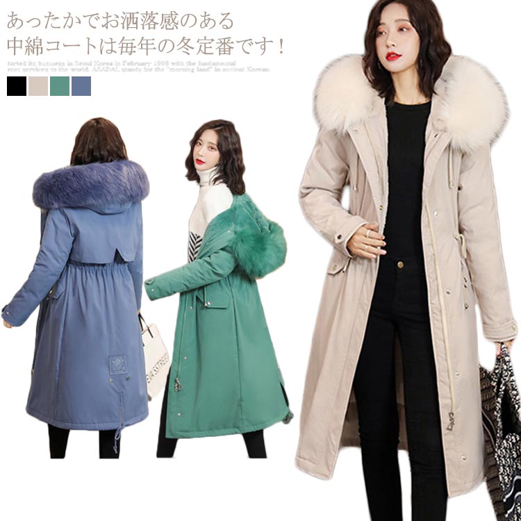 中綿コート レディース ロングコート 裏起毛 アウター ファー ロング丈 フード付き ゆったり 体型カバー 着痩せ 防寒服 冬物 お洒落