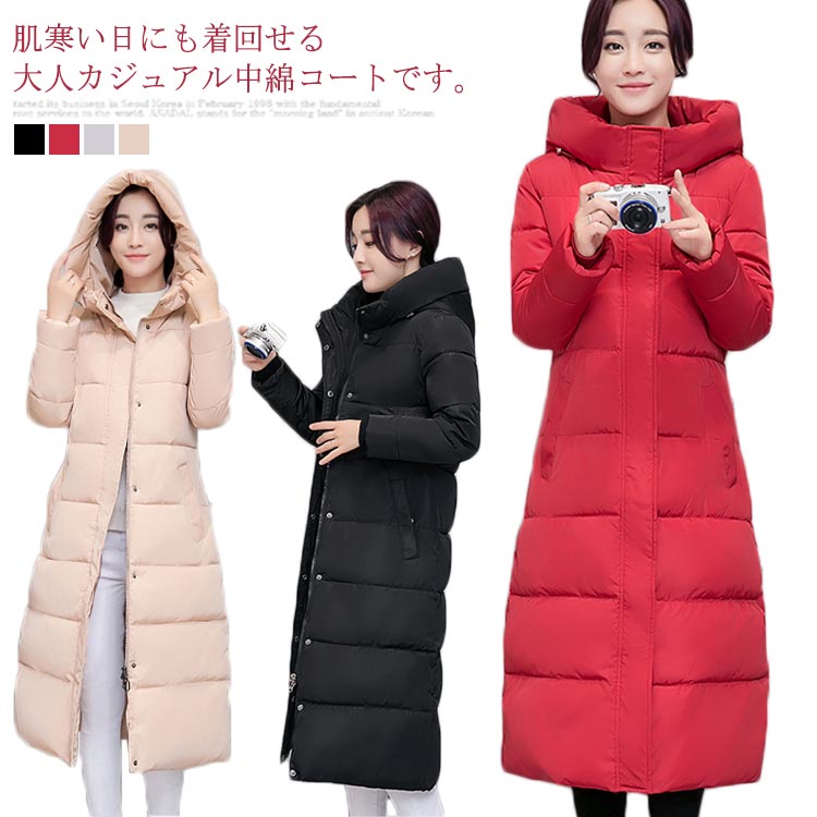 中綿コート レディース ロングコート アウター ロング丈 フード付き ゆったり 体型カバー 厚手 着痩せ 防寒服 冬物 無地 お洒落 大きいサイズ