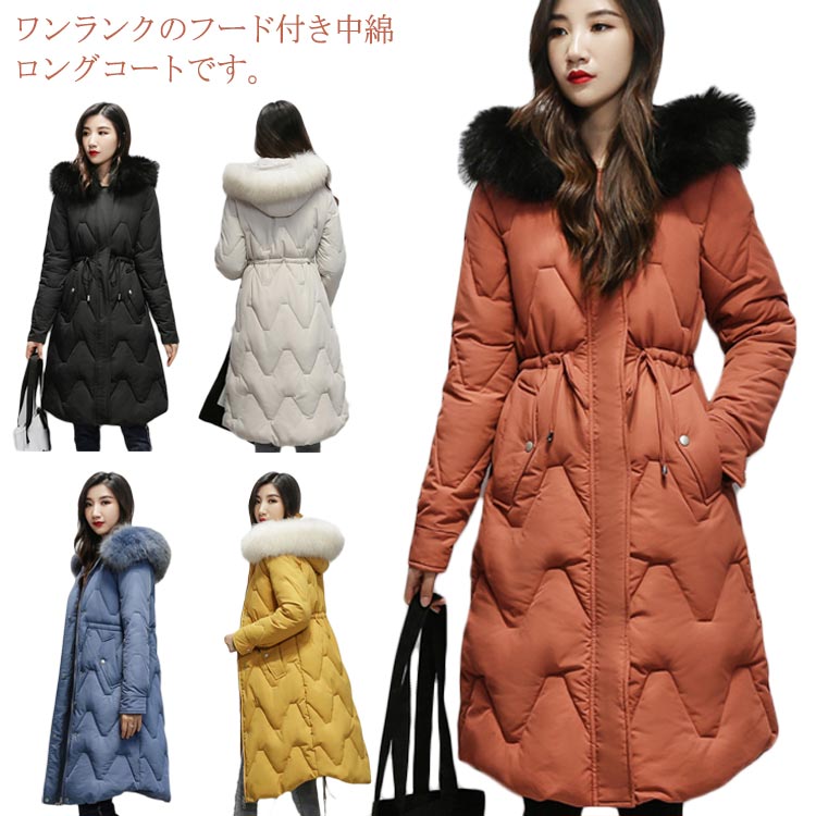 中綿コート レディース ロングコート アウター ファー付き ロング丈 フード付き ゆったり 体型カバー 厚手 着痩せ 防寒服 冬物 無地 キレイめ