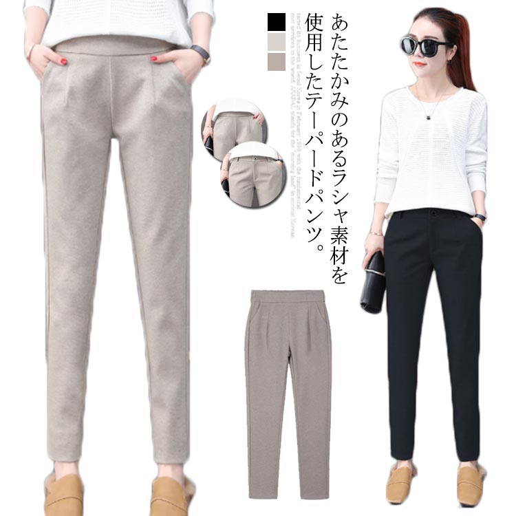 テーパードパンツ レディース ロングパンツ パンツ サルエル ボトムス ラシャ風 ゆったり 着痩せ シンプル 通勤 通学 お洒落 厚手 秋冬 美脚