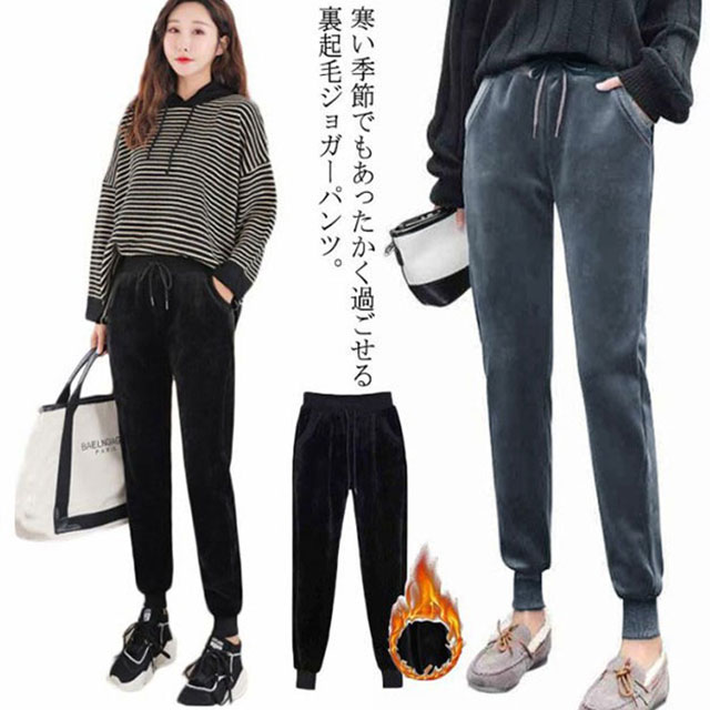 ジョガーパンツ ロングパンツ ベロア レディース ボトムス 裏起毛 ウエストゴム 体型カバー 着痩せ 美脚 厚手 細身 大きいサイズ お洒落
