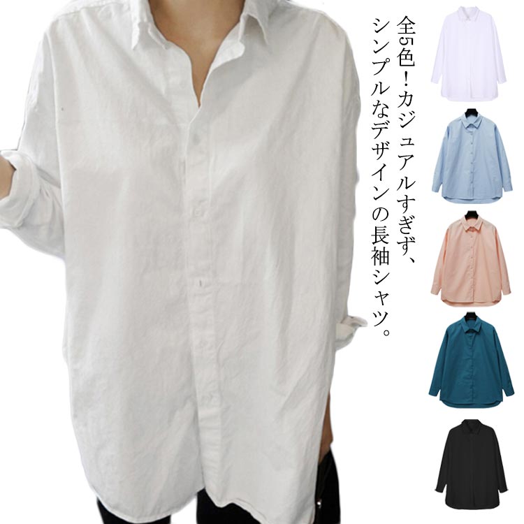 シャツ トップス レディース ブラウス 長袖 ゆったり カジュアルシャツ ロング丈 オーバーサイズ 体型カバー 無地 リラックス お洒落 春秋 通勤 通学