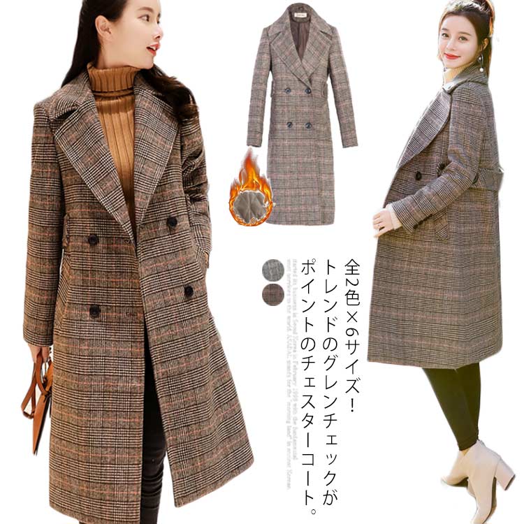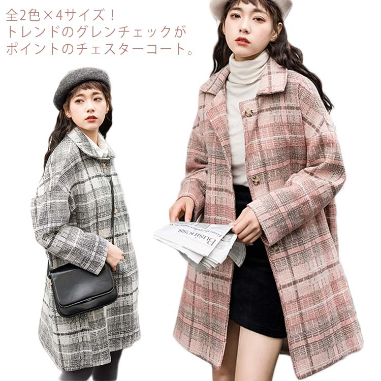 全2色×6サイズ!グレンチェックコート チェスターコート レディース チェスター アウター コート ロングコート チェック柄 冬 秋冬