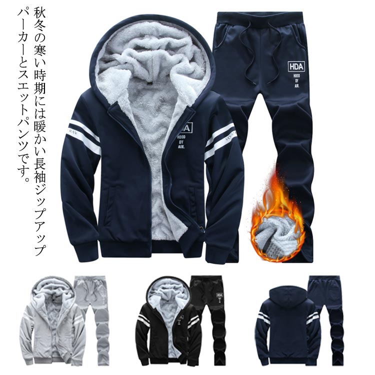 セットアップ メンズ フード付き ジャージ 裏ボア 上下セット 裏起毛 パーカー ジップアップ 厚手 スウェット スポーツウェア 防寒 秋冬 お洒落