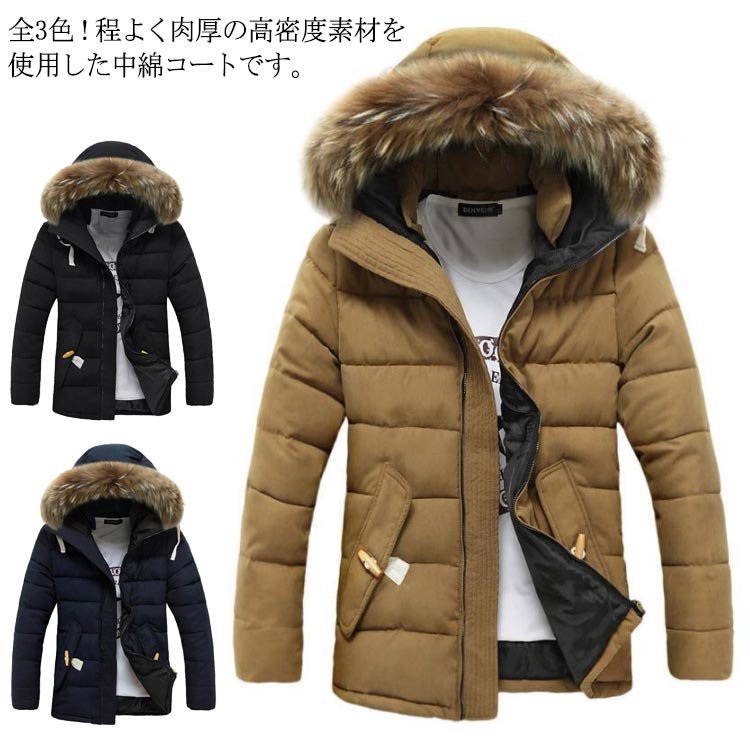 中綿コート メンズ 中綿ジャケット アウター フェイクファー フード付き ジャンパー 体型カバー ポケット付き 厚手 防寒 冬物 冬服 暖かい