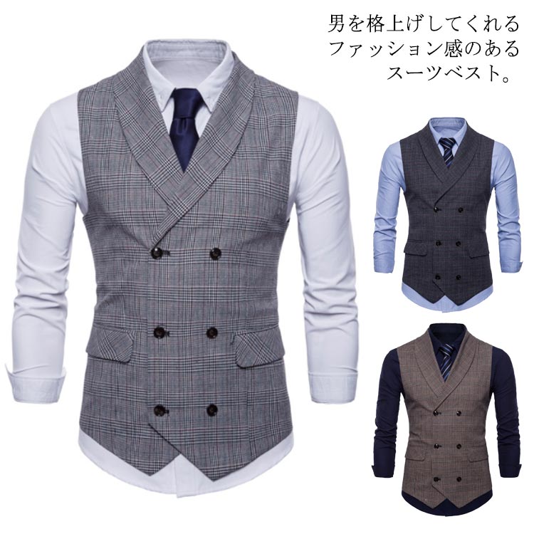 ベスト メンズ ジレー スーツベスト チョッキ 紳士服 ビジネス チェック柄 トップス 結婚式 パーティー スーツ スリム カジュアル お洒落 大きいサイズ