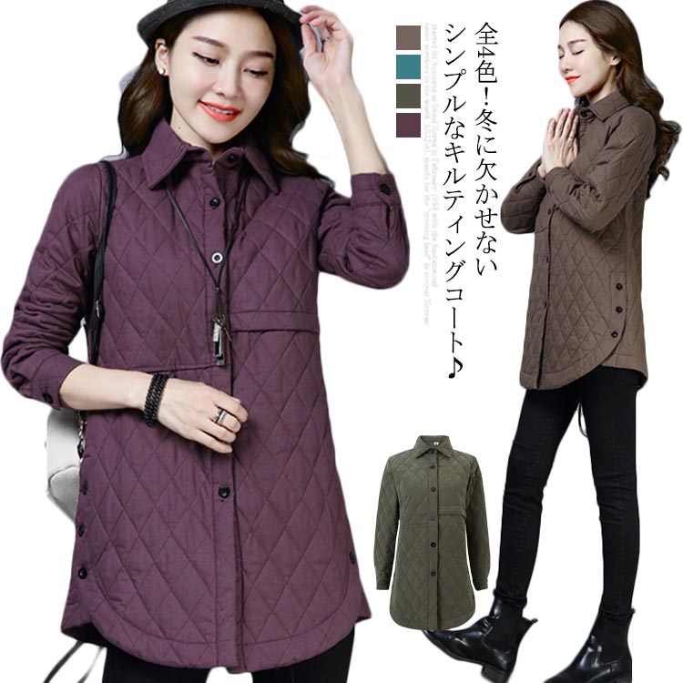 中綿コート レディース キルティング 中綿入り ロング丈 綿麻コート キルティングコート アウター 暖かい 体型カバー 大きいサイズ 着痩せ 冬物 30代 40代 50代
