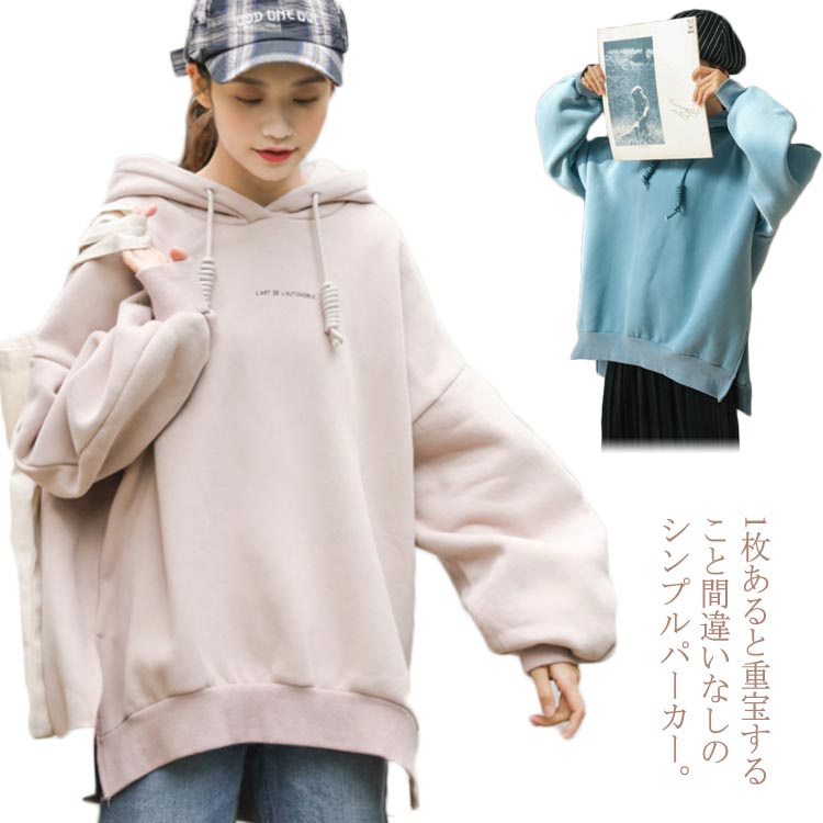 パーカー フード付き 長袖 トップス レディース 厚手 体型カバー ブルオーバー BF風 秋冬物 ゆったり 無地 シンプル 韓国ファッション お洒落