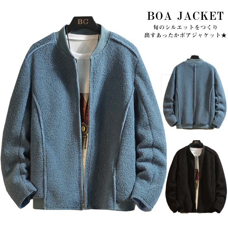 リブ襟仕様 ジャケット メンズ ボア ジャケット ボア ブルゾン コート ボア パーカー パーカ ライトアウター 秋 冬 ボア ジップ パーカー パーカ おしゃれ かっこいい モード系 ストリート系