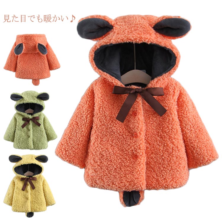 もこもこ コート ジャケット ベビー ベビー服 キッズ 上着 アウター ボアコート 裏起毛 厚手 防寒 フリース 中綿コート 中綿ジャケット 着ぐるみ ムートンコート 可愛い 耳付き 子供服 子ども 秋服 冬服 女の子 男の子