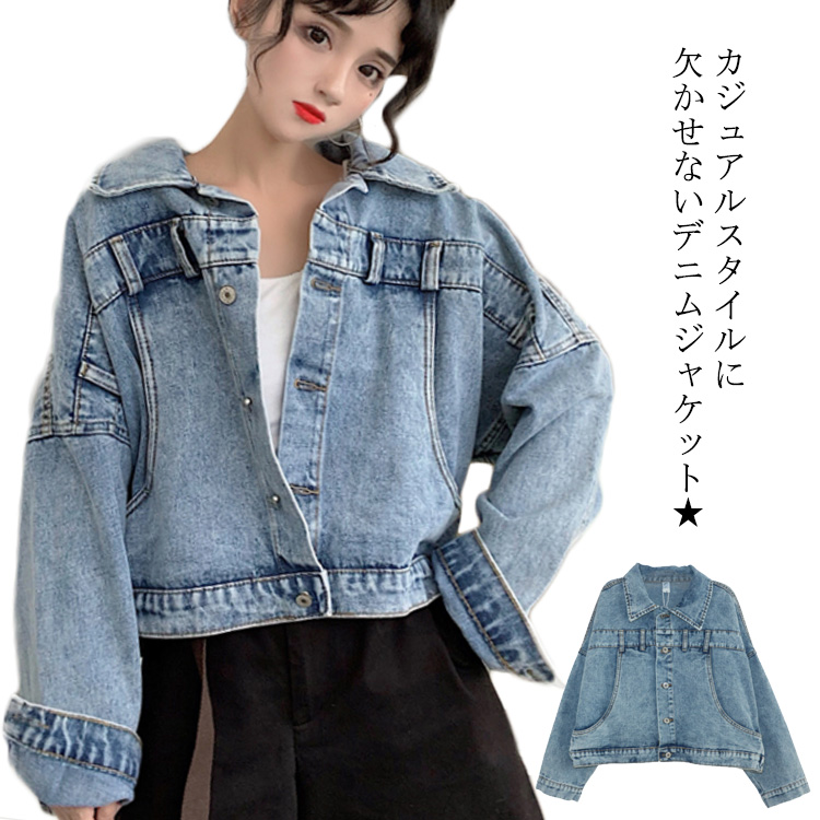 送料無料 デニムジャケット レディース Gジャン 長袖 ショート丈 ゆったり ライトアウター ジャケット ウォッシュ加工 色落ち お洒落 ユーズド感 ヴィンテージ カジュアル 秋新作