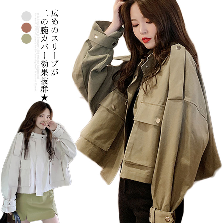 送料無料 ミリタリージャケット レディース ジャケット 長袖 ショート丈 ショートジャケット Gジャン ライトアウター 秋アウター ゆったり オーバーサイズ 切りっぱなし お洒落 カジュアル ルーズ 秋新作