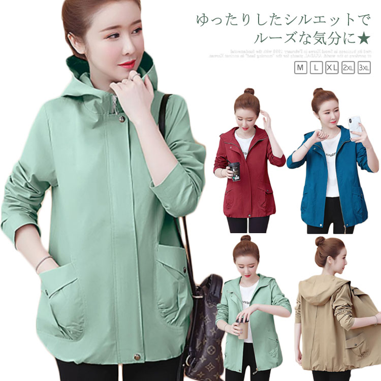 送料無料 スプリングコート レディース トレンチコート 長袖 ゆったり カジュアルコート パーカコート フード付きコート オーバーサイズ ルーズ お洒落 カジュアル アウター コート 体型カバー 春秋 秋新作