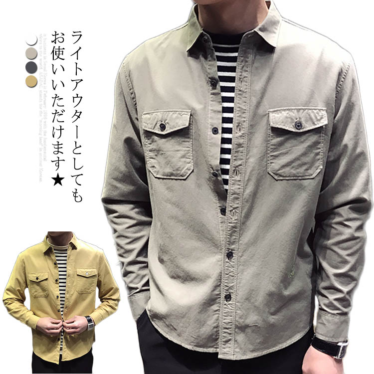 送料無料 シャツ メンズ 長袖シャツ カジュアルシャツ 長袖 ゆったり ゆるシャツ 羽織れる 無地 無地シャツ お洒落 カジュアル シンプル かっこいい トップス 春秋 秋新作