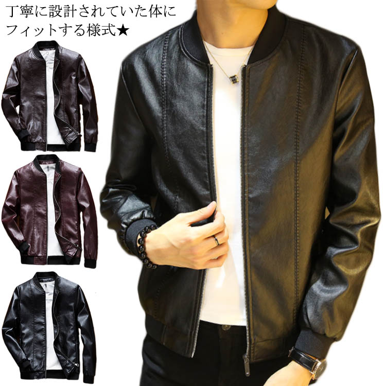 送料無料 ジャケット メンズ コート PUレザー フェイクレザージャケット 長袖 ブルゾン PUフェイクレザー ライトアウター 無地 カジュアル シンプル スリム お兄系 大人 秋新作