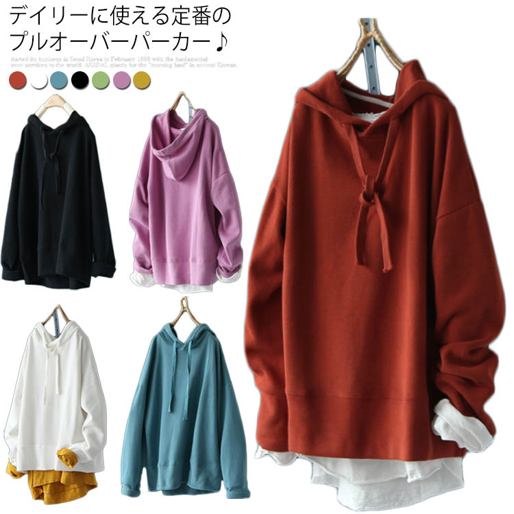 送料無料 全7色 パーカー 長袖 トップス レディース フード付き Tシャツ 無地 春秋 シンプル お洒落 カットソー ゆったり カジュアル 新作