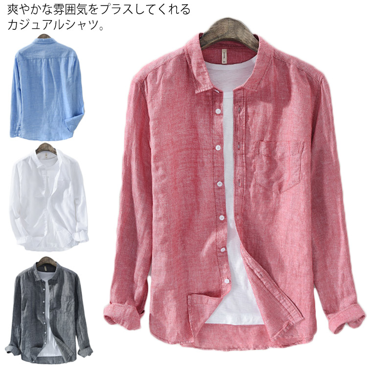 送料無料 シャツ 長袖 カジュアルシャツ メンズ トップス 綿麻シャツ 薄手 リネン 春物 秋物 リラックス お洒落 ナチュラル シンプル 新作