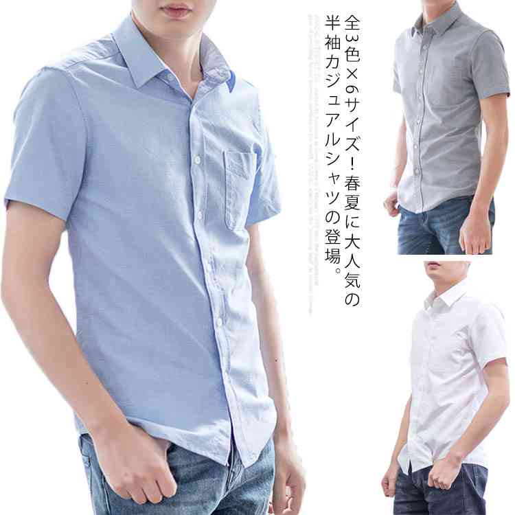 《送料無料》全3色×6サイズ!シャツ メンズ 無地シャツ カジュアル 半袖シャツ レギュラーカラー メンズシャツ トップス コットンシャツ 綿 スリム 夏 シンプル 無地 男性用