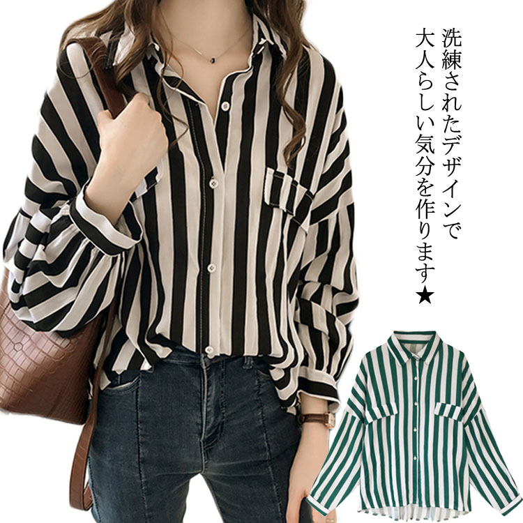 送料無料 シャツブラウス レディース ブラウス 長袖ブラウス 角襟 ストライプ柄 ドロップショルダー レトロ シンプル カジュアル 普段着 お洒落 キレイめ トップス 夏秋新作