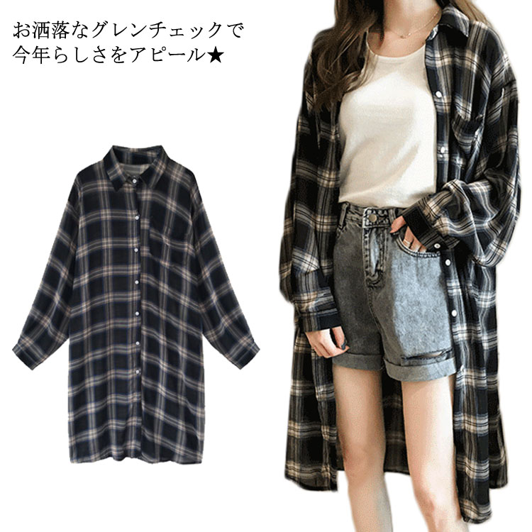 送料無料 タータンチェック レディース シャツ チェック柄 長袖 ゆるシャツ ロングシャツ ゆったり ドルマンシャツ お洒落 カジュアル クラシカル トップス ライトアウター 秋新作
