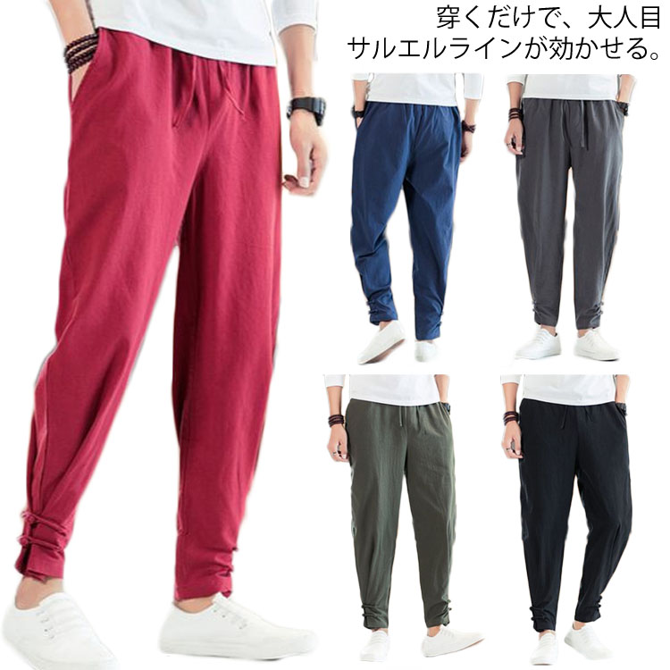 送料無料 サルエルパンツ ボトムス メンズ ロングパンツ 綿パンツ カジュアルパンツ 薄手 夏春秋 大きいサイズ ゆったり
