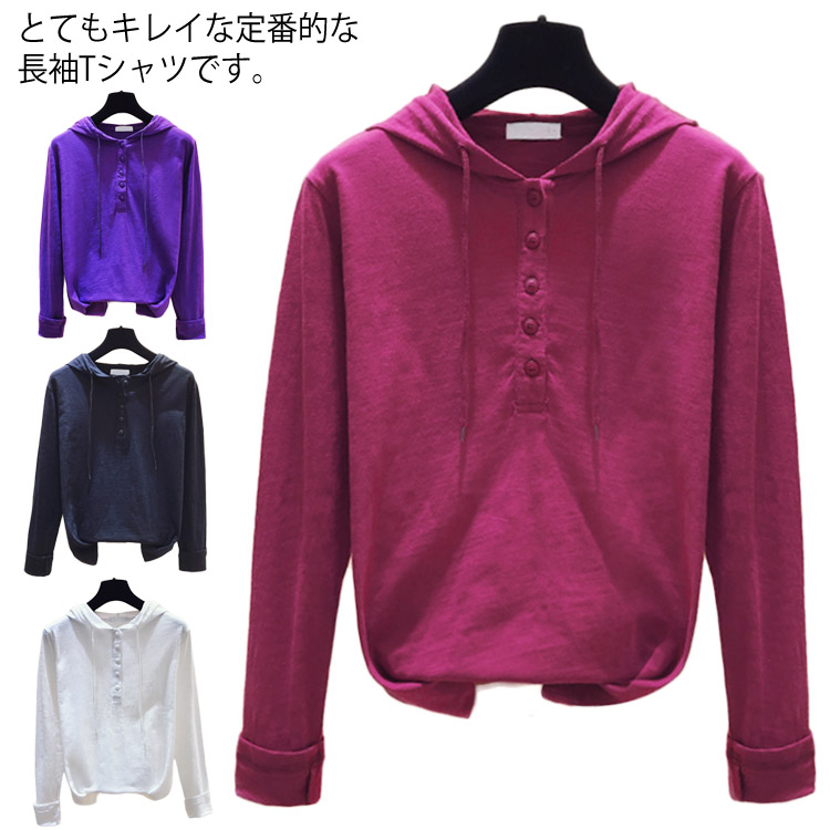 送料無料 Tシャツ 長袖 フード付き ストレッチ トップス レディース ゆったり 大きいサイズ カジュアル ベーシック 春物 秋物 新作