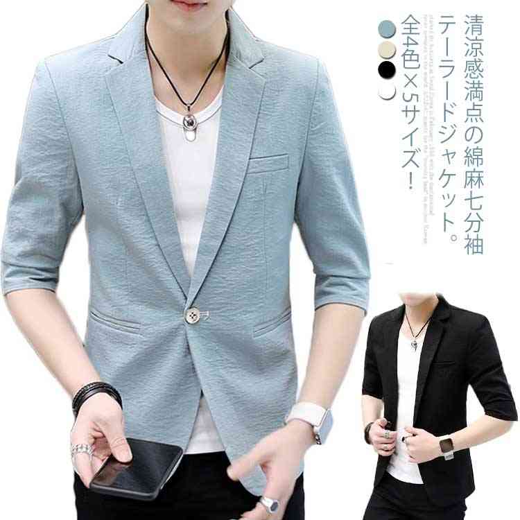 《送料無料》全4色×5サイズ!テーラードジャケット メンズ 綿麻 サマージャケット アウター テーラード ジャケット 麻混 七分袖 スリム 春夏 カジュアル