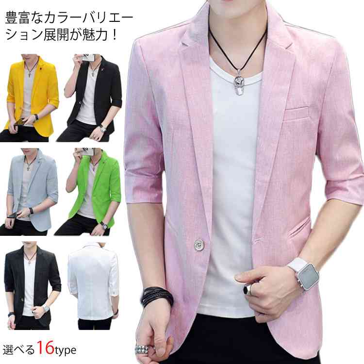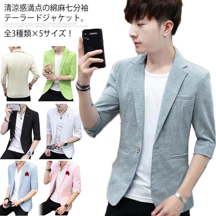 《送料無料》全3種類×5サイズ!7分袖 テーラードジャケット メンズ 綿麻 ジャケット サマージャケット アウター テーラード 麻混 七分袖 スリム ショート丈 春夏 カジュアル