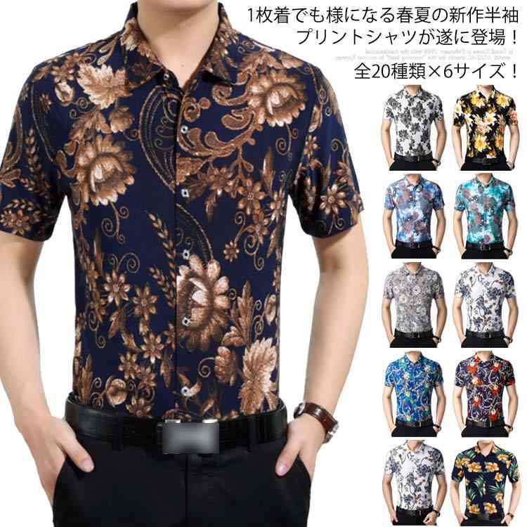 《送料無料》全20種類×6サイズ!アロハシャツ シャツ メンズ 花柄シャツ 花柄 半袖シャツ ストレッチ トップス ブラウス 半袖 夏服 総柄 アロハ 父の日 プレゼント ギフト 春夏