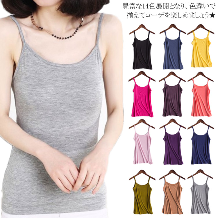 送料無料 キャミソール レディース インナーキャミソール 無地キャミソール ラウンドネック ノースリーブ 薄手 下着 伸縮性 ゆったり シンプル カラバリ 重ね着 夏物 夏新作