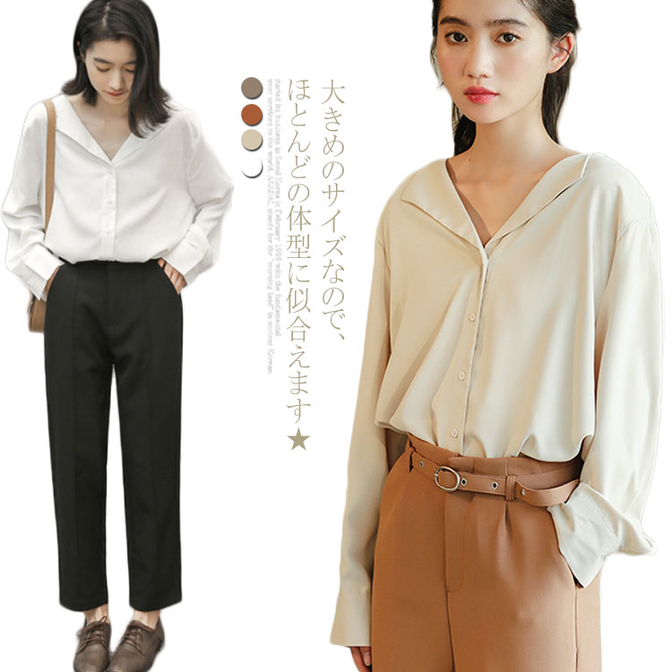 送料無料 ブラウス レディース トップス シャツ 長袖 シフォン ボタン付き Vネック カラバリ 前開き 無地 通勤 普段着 上品 大人 カジュアル 柔らかい 通気性 春夏 夏新作