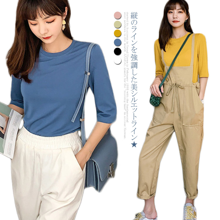 送料無料 Tシャツ レディース カットソー 七分袖カットソー プルオーバーTシャツ トップス 純色 ショート丈 ベーシック 着痩せ カジュアル スリム シンプル ストレッチ 無地 ルーズ ゆったり 夏新作