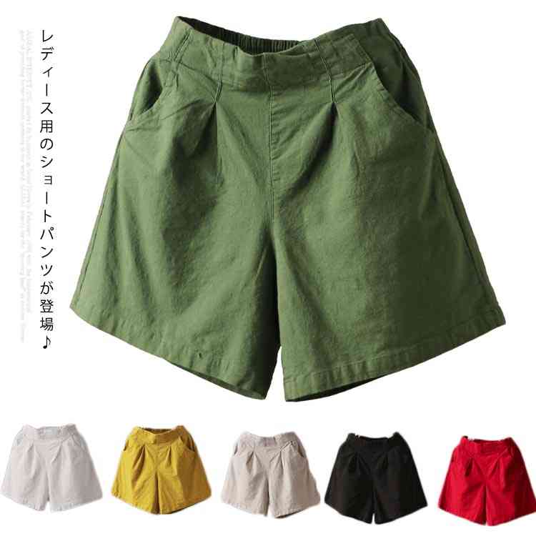 送料無料 全6色 ショートパンツ ハーフパンツ 綿麻パンツ ボトムス レディース 綿麻 リネンパンツ ウエストゴム ワインドパンツ 無地 新作 夏服