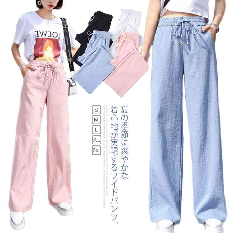 送料無料 ワイドパンツ 体型カバー レディース ガウチョパンツ ウエストゴム 女性用 ロング丈パンツ 綿麻パンツ ゆったり ボトムス ハイウエスト 落ち感 シンプル