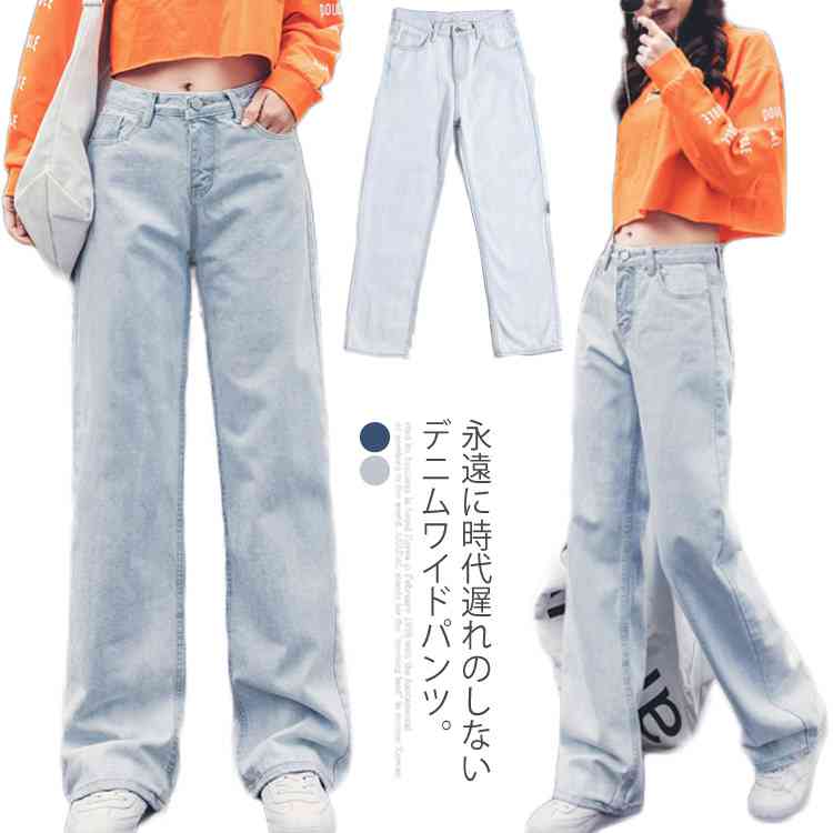 送料無料 デニムパンツ ワイドデニム ハイウエスト ボトムス レディース 薄手 ストレート ロングパンツ ゆったり 大人カジュアル お洒落 春夏秋 着痩せ