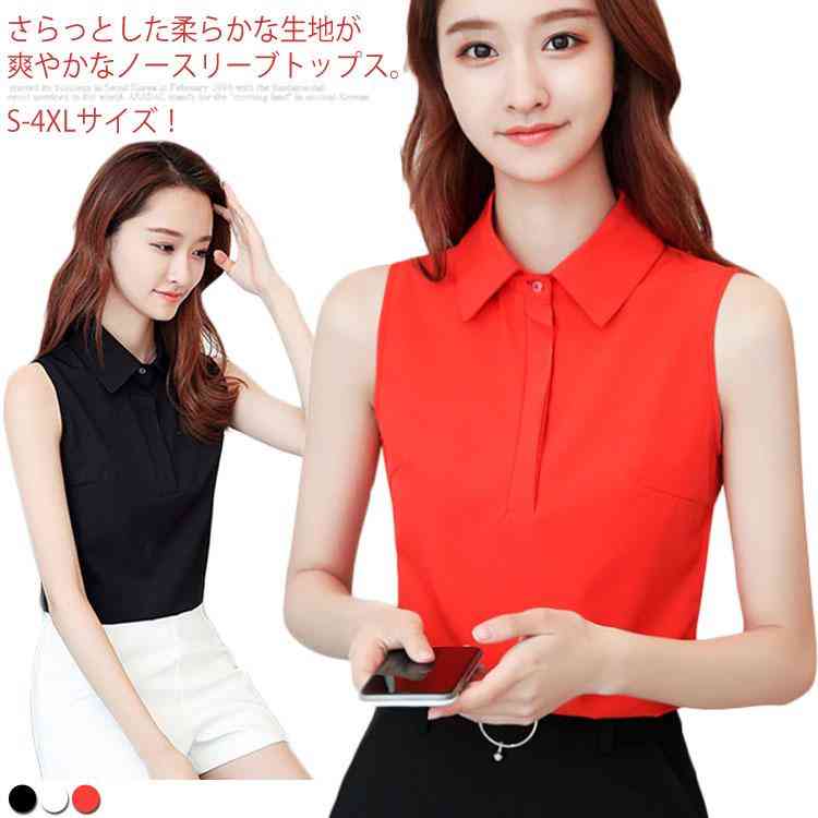 送料無料 単品としてもインナーとしても使える!シフォントップス レディース ノースリーブ シャツ ブラウス トップス 袖なし 夏物 レギュラーカラー インナー 大きサイズ 春 夏 薄手 シンプル 無地