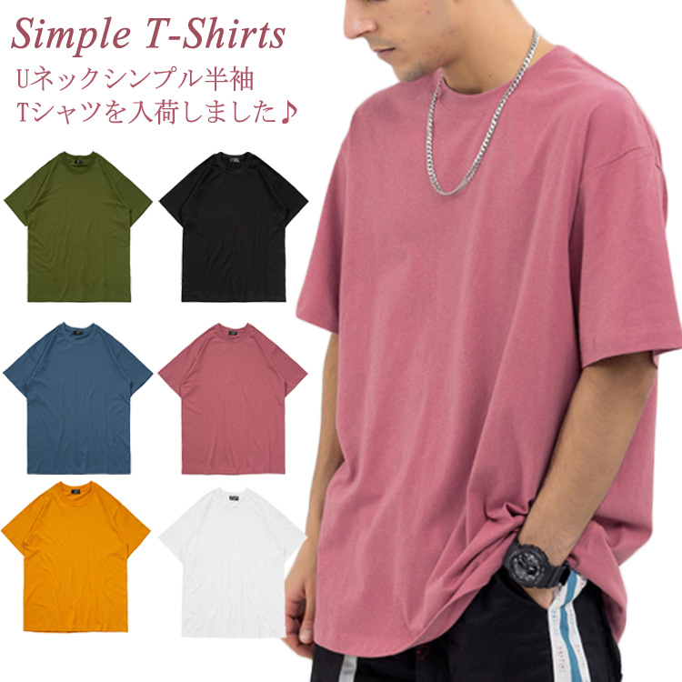 Uネック Tシャツ 無地 Tシャツ メンズ 半袖Tシャツ クールネック ストリート 半袖 Tシャツ ゆったり プルオーバー トップス カットソー 夏男 春 夏 夏服 夏物